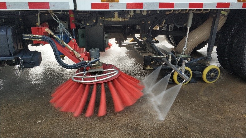 ![]() | 駕駛室后下方標(biāo)配低壓前沖,由低壓水泵 產(chǎn)生的水流,可以像灑水車一樣對路面進行大 面積沖洗,沖洗寬度可達16米。 |